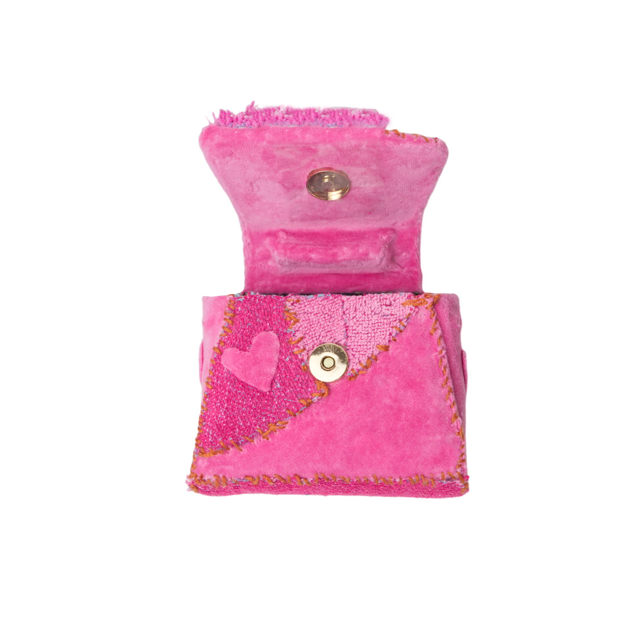 1 of 1 micro bag customized using repurposed materials. Cute compact size to hold going out essentials like cash/cards, gloss, keys, etc.